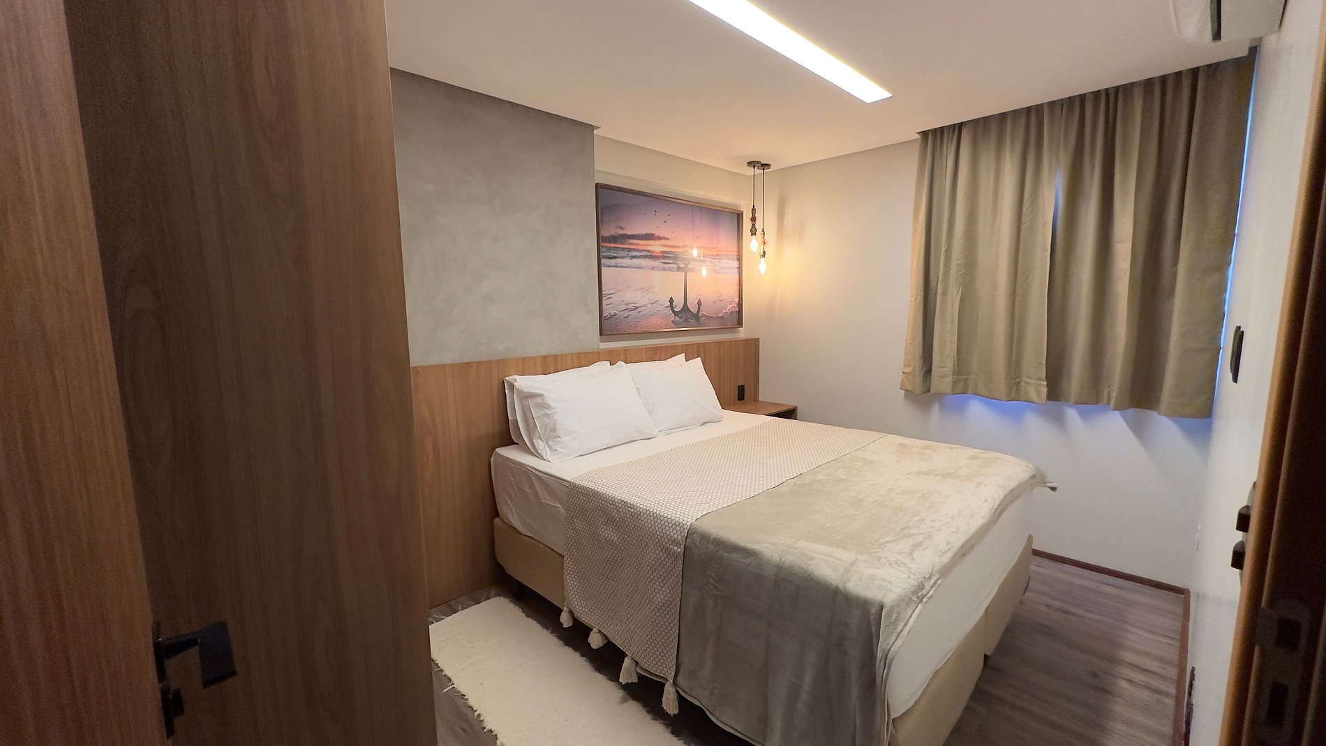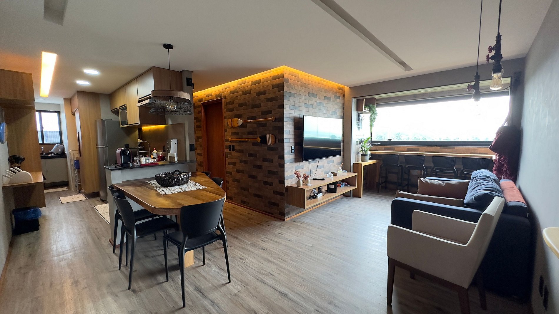 Nosso apê é totalmente mobiliado e equipado para atender as principais necessidades dos hóspedes, contamos com uma suíte com cama queen, um quarto com bicama de solteiro, um banheiro social, sala de estar com varanda integrada e sofá cama, sala de jantar, cozinha e lavanderia.
